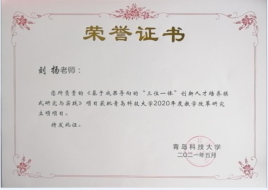 4、山东省本科教学改革研究项目--“兴趣主导+知识融合”的信息类创新人才培养模式探索与实践