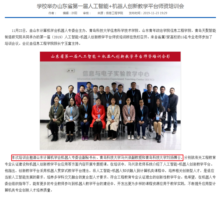 7、山东省第一届人工智能+机器人创新教学平台师资培训会