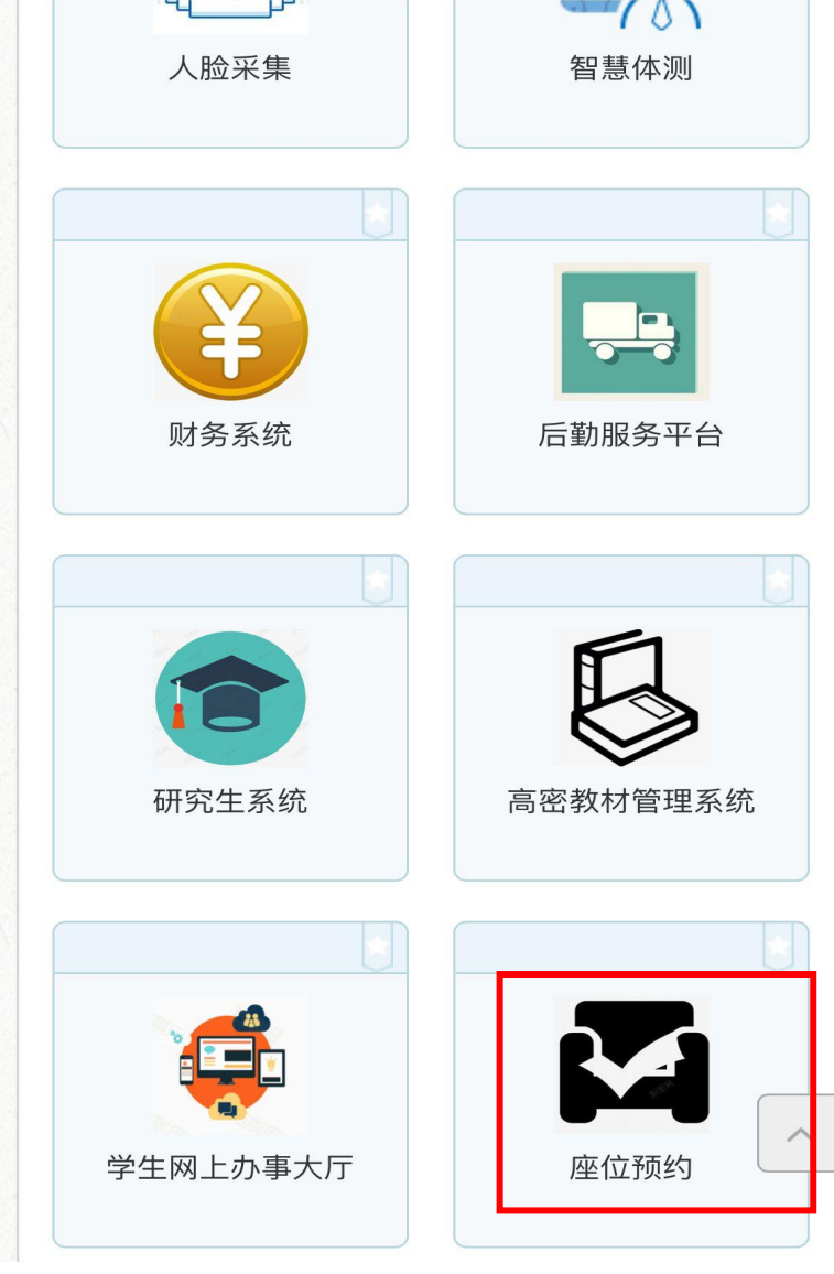 2.在业务系统界面找到“座位预约”并点击进入。