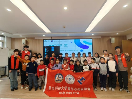 青衿志愿服务协会社会实践队前往青岛市崂山区东城国际社区开展“e心课堂”系列活动。实践队通过科学家精神宣讲、机器人体验和AI伴学体验,为社区青少年赋能。